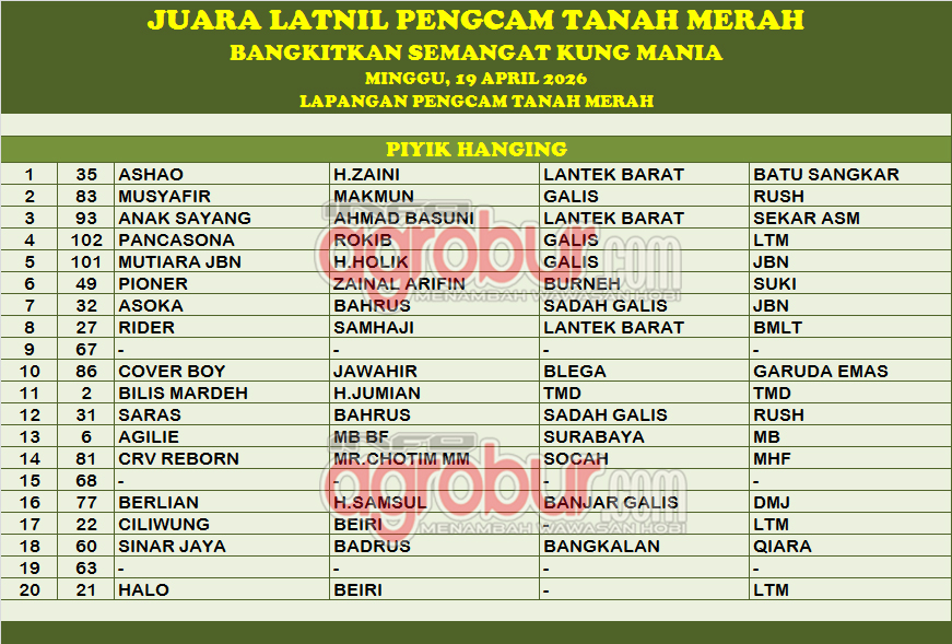 Padahal respon yang diberikan kung mania lumayan besar. “Sekarang dalam masa tanam, jadi tidak ada lahan banyak buat lomba, makanya saya hanya membuat kelas Piyik Hanging dua blok saja,” ungkap Munif lagi. Dampaknya banyak kung mania yang batal masuk lapangan karena tidak kebagian tiket.