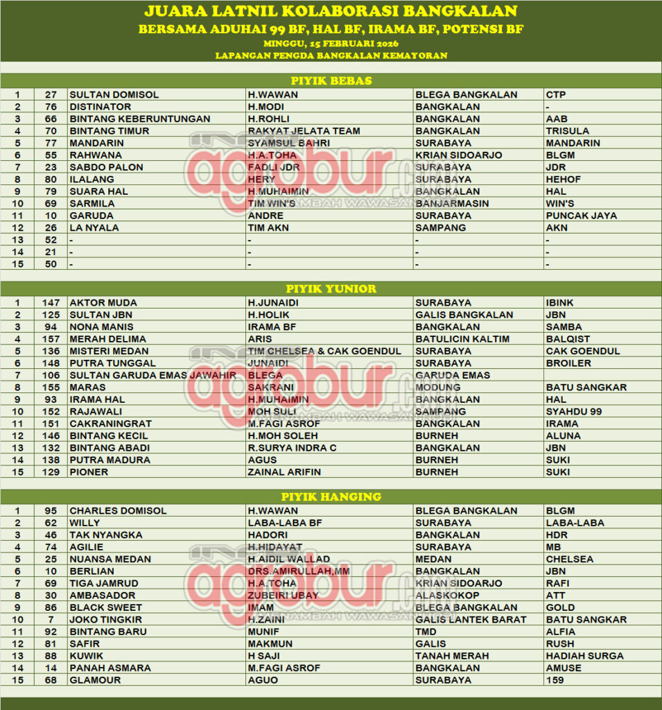 Cipto Irama, salah satu penggagas kegiatan ini menambahkan bahwa agenda yang digelar pada Minggu, 15 Februari 2026 ini adalah bentuk kepedulian peternak untuk terus melanjutkan hobi. “Saya hanya mendukung saja agar Bangkalan bisa tetap jalan, apapun yang terbaik, pasti saya ikut,” jelas pemilik Irama Bird Farm.