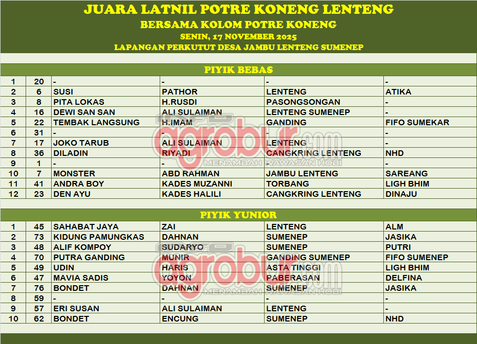 Disampaikan pula bahwa anggota kolom selama banyak yang tidak bisa berlomba karena Lenteng memang vakum kegiatan dinilai. Mengawali LatNil ini, diharapkan bisa mengembalikan semarak hobi perkutut di Lenteng yang sudah sudah lama tidak pernah dirasakan lagi.