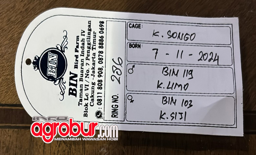 “Saya baru saja take over burung untuk amunisi di Piala Raja. Saat ini burung tersebut sudah dipersiapkan oleh Mas Rizki Jombang,” ungkap Uki. Rizki yang dikonfirmasi mengakui hal tersebut. “Memang benar, Mas Uki baru saja take over burung bergelang BIN Jakarta. Burung ini milik Abah Azis LSJ Rewwin Waru Sidoarjo,” urai Rizki.